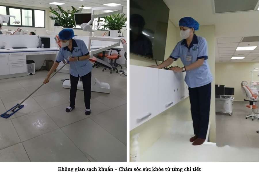 - Đảm bảo sạch sẽ liên tục ở các khu vực: phòng khám, hành lang, nhà vệ sinh, phòng cấp cứu, phòng mổ (nếu có)